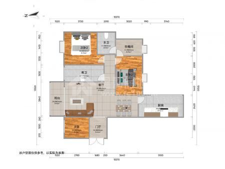 房子是套四双卫,有一个房间做成了衣帽间,中央空调有暖气片,房间都有空调