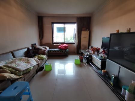 老城区单位房一梯两户,出门是滨江路,站在客厅里面,可看江景有小区院子可停车,方正宽大中间楼层