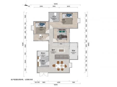 美域天城横厅套三双卫